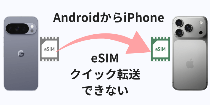 とくにAndroidからiPhoneへの転送は非対応のため、従来のeSIM再発行で機種変更が必要です。